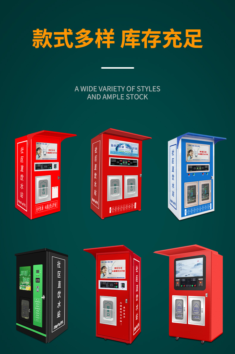 * Can be equipped with access control system optional weak alkali/mineralization/pure, cooling, heating water